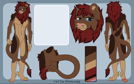 includes front, back, tailshot, headshot, color pallet, simple background in standard style